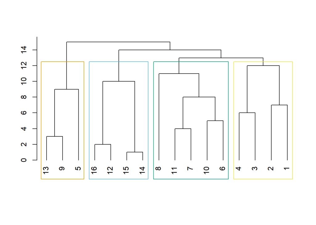 [1] 1 1 1 1 2 3 3 3 2 3 3 4 2 4 4 4